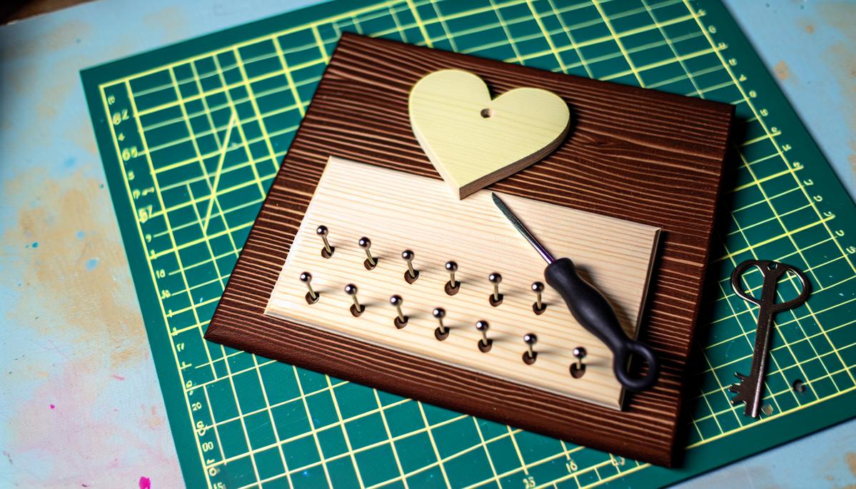 Verwandlung eines Holzbretts in ein dekoratives Schlüsselbrett mit Herz